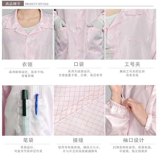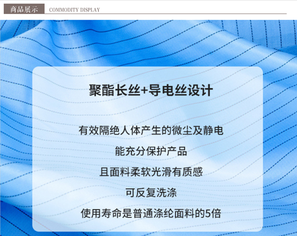 商品名称:防静电无尘工作服大褂商品型号:1204050001商品材质:涤纶长丝+导电纤维商品规格:S/M/L/XL/2XL/3XL,可定制4xl以上超大码;商品颜色:蓝色、白色,其他颜色可定制